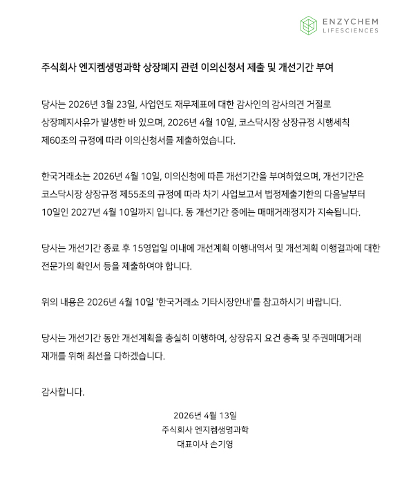 [ADVANCE OF K-PHARM INDUSTRY] Enzychem Lifesciences