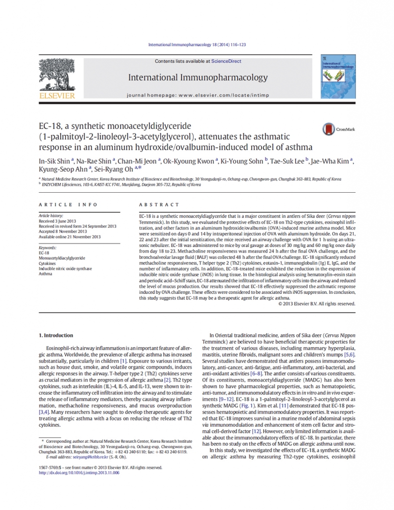 EC-18의 수산화 알루미늄/오발부민 유도 천식 모델에서 천식 반응 경감 효과 확인